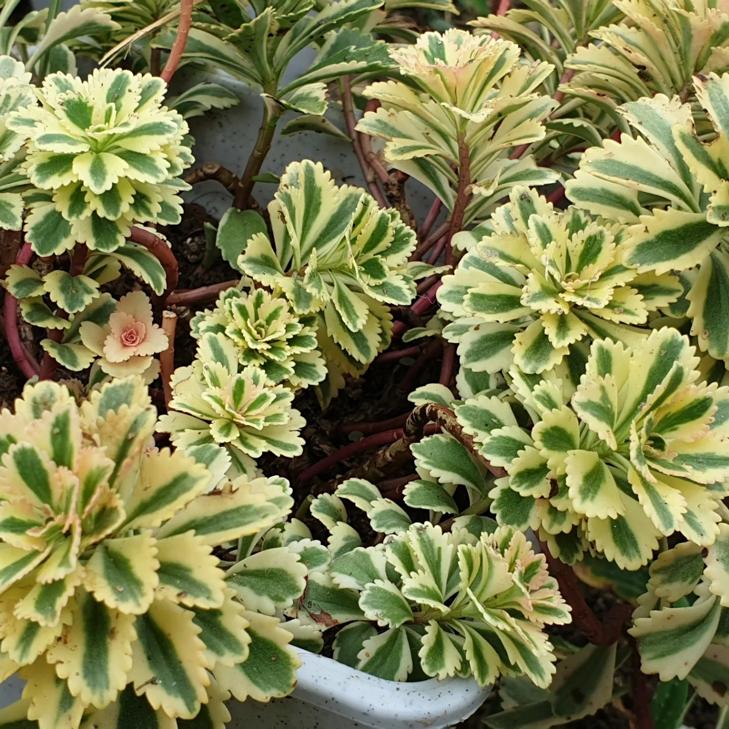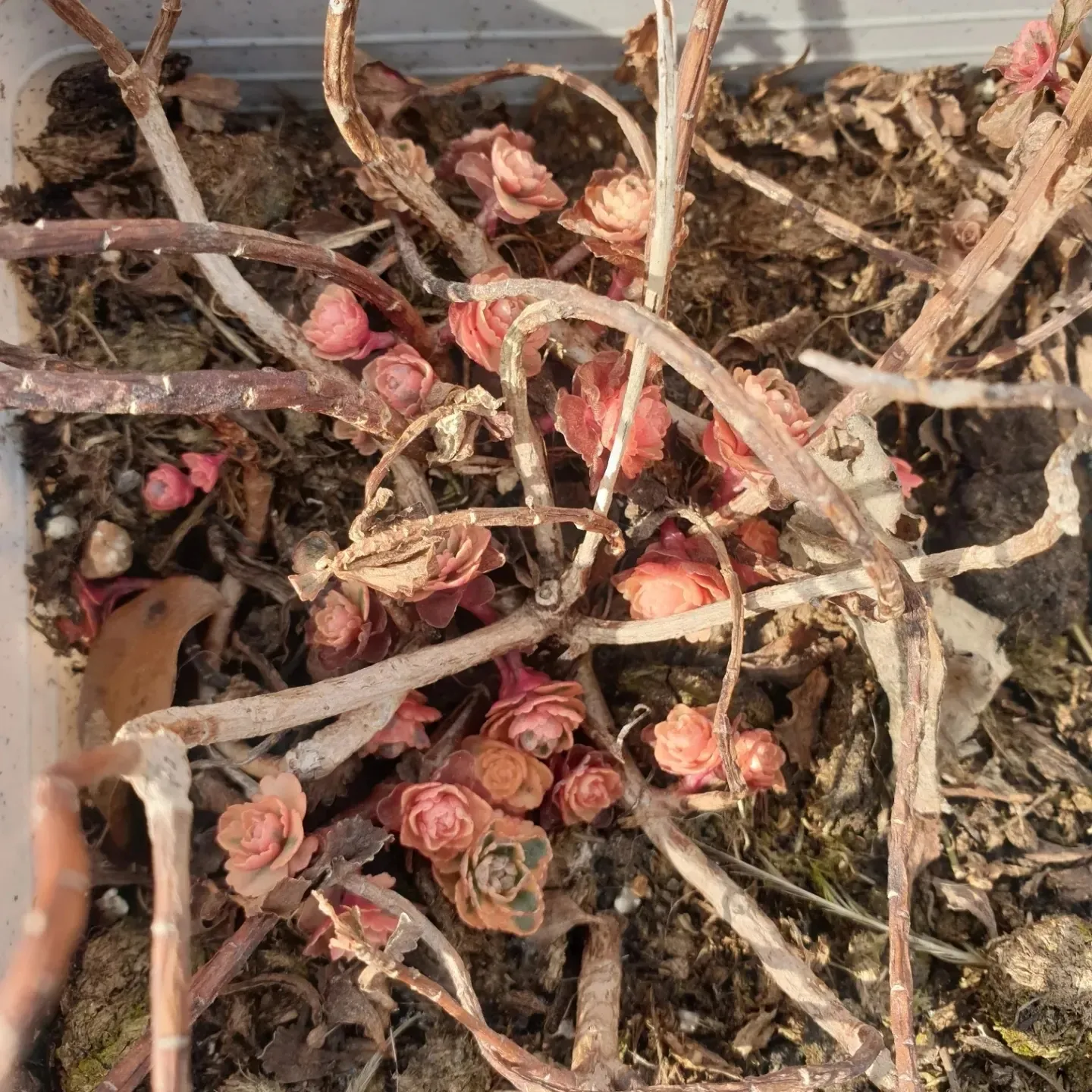 섬기린초는 겨울이 오기전에 다음 해에 자랄 싹을 미리 틔우는데 지제부 뿐만아니라 그 해 자란 줄기의 중간이나 아랫부분에서도 싹이 나옵니다. 새싹은 크게 자라지않고 겹장미나 모란을 닮은 아름다운 모습으로 잔뜩 웅크린채 혹독한 겨울을 이겨냅니다. 다른 기린초들에서는 보기 힘든 섬기린초의 독특한 특징이죠. 아틀란티스 세덤도 섬기린초와 같은 모습으로 겨울을 납니다. 다만 무늬가 있기 때문에 섬기린초에 비해 세력이 약하고 좀 안쓰러워 보이기도 합니다.^^
